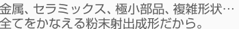 0.0005gのテトラポッド型人工骨や、140gの超硬部品などニヤネットシェイプで製品化が可能です。
